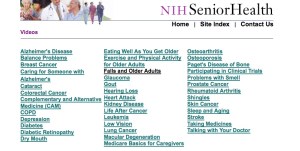 The NIH Senior Health site, developed by the National Institute on Aging and the National Library of Medicine, maintains a huge library of videos. According the website, the topics are chosen to “offer up-to-date medical information, tips for healthy living, and inspiring stories of older adults who are coping with diseases or conditions of aging.”