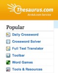 The simplest way Dad can use the thesaurus (technically this is at thesaurus.com) is by enter a word and getting a list of synonyms. Sometimes that’s all he needs to figure out the right word. The crossword puzzle solvermakes it even easier to search for a word because a user enters the clue as well as the required number of letters, but Dad thought this made finding answers too easy. Other links on the crossword page lead to various newspaper crossword puzzles — some available for free and others for a subscription.