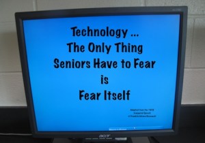 Read Seniors Have Nothing to Fear but Fear Itself, a post by Jamie Carracher over at the Aging Online blog. Carracher points out that most seniors want to learn as much as they can about technology, but their fear and anxiety often get in the way. I agree.