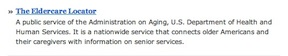 Look for the eldercare link (see image at left) at the bottom of the Medicare Caregiver homepage — the first page of the site.