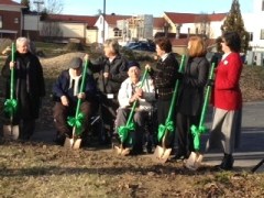 About halfway through the groundbreaking, a few people went outside to use the the shovels, each shovel festively wrapped in a bright green bow. Other activities included presentations, spirited hymn-singing, a litany prayer filled with VMRC historical information, and recognition of the many people who are helping to ensure the success of the new Woodland Park community. And a lot of people working on this — VMRC staff, residents, board members, and even residents of VMRC’s current nursing community, Oak Lea (several who are planning to be some of the first residents in the new community).